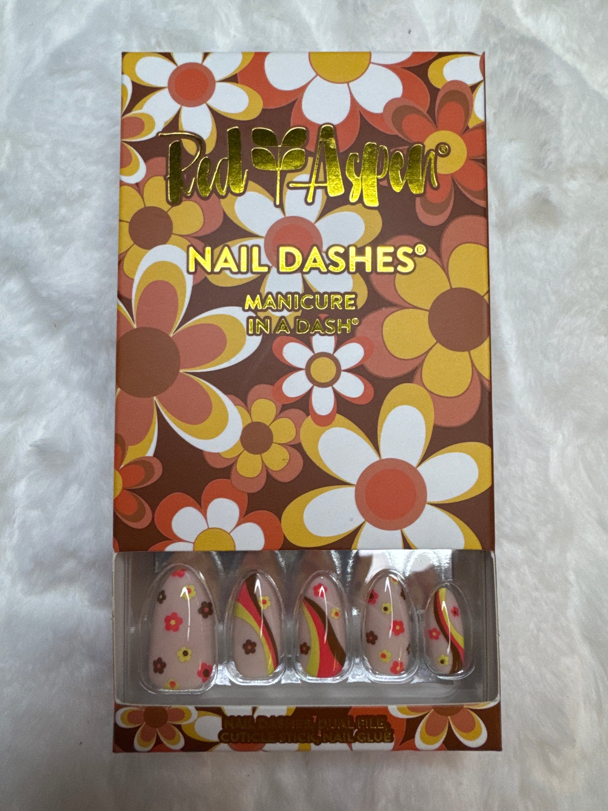 Medium Almond, nude with retro floral design